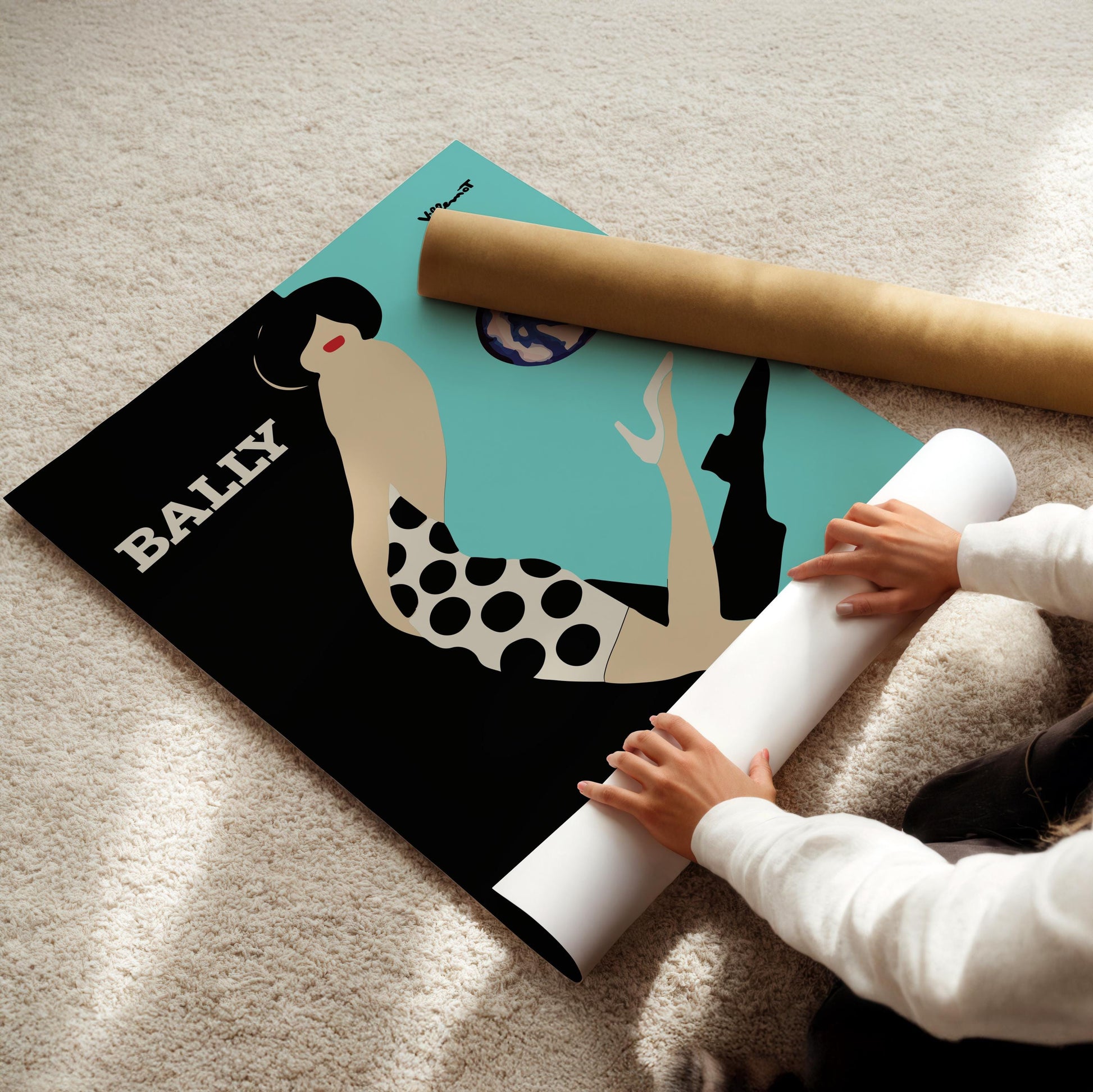 Bally Diptyque Woman Teal Vintage Wall Art, Vintage Advertising Poster, Luxury Old Fashion Canvas, Print, Framed, Retro Shoe Advertisement