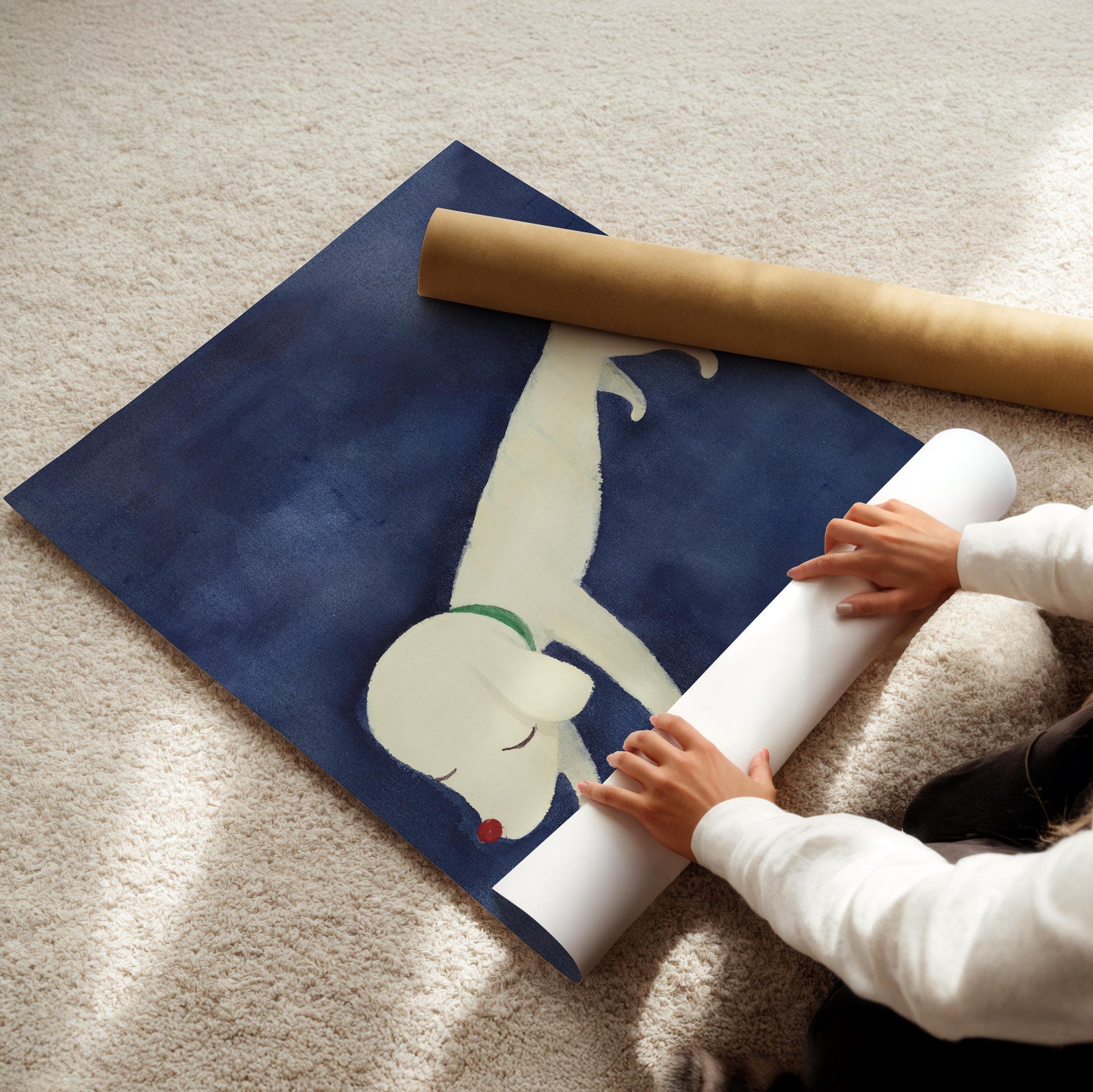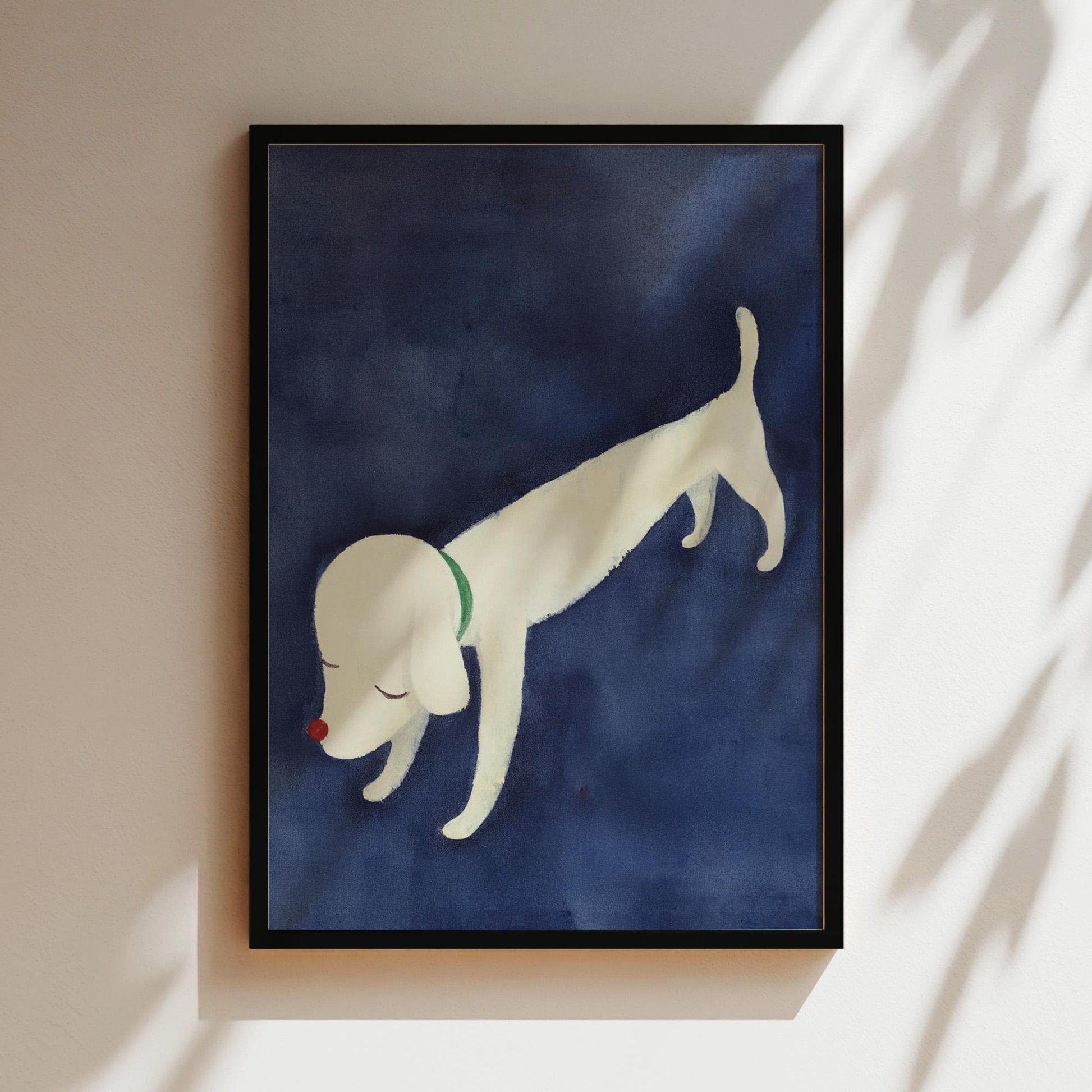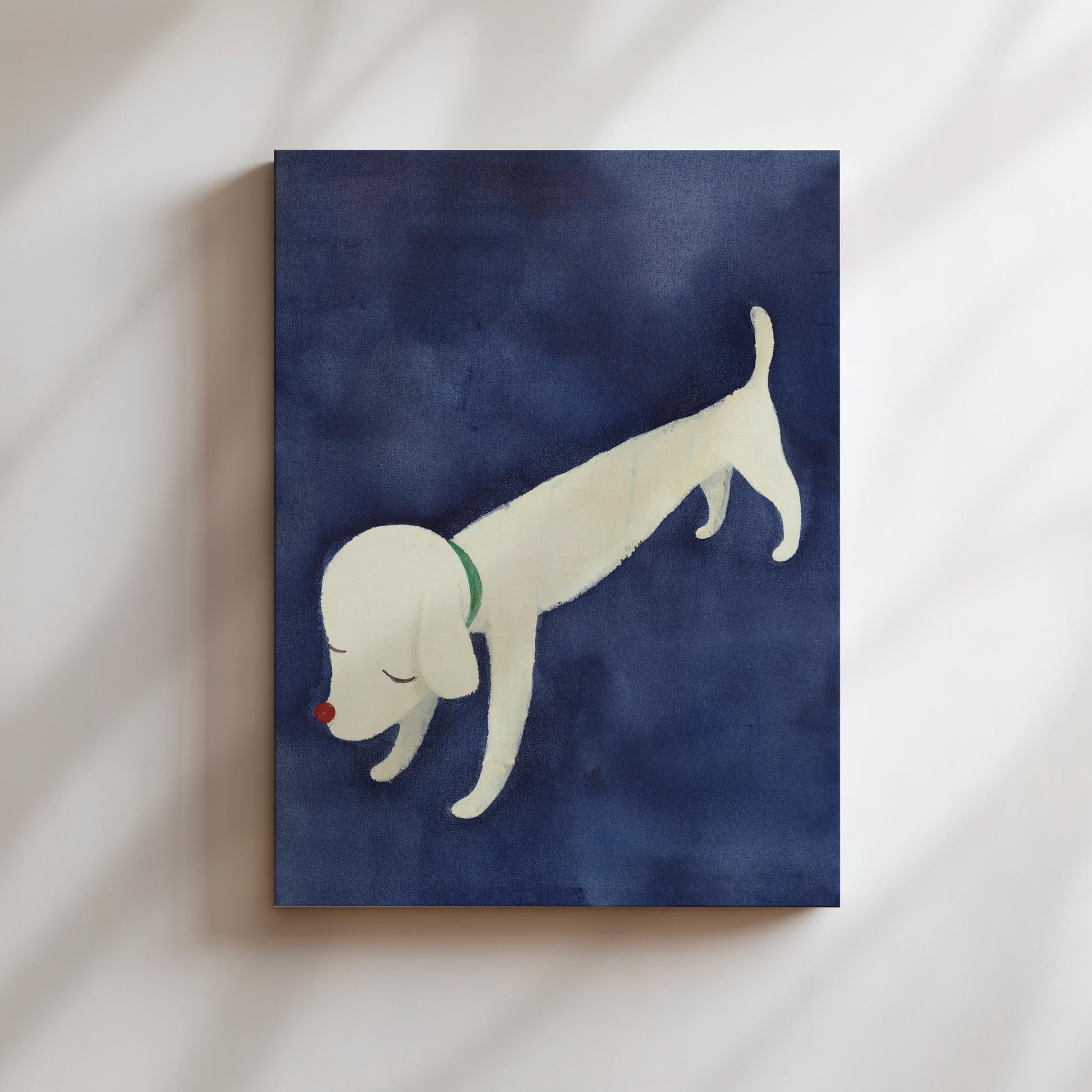 Nara Art Print - White Dog on Blue Background - Blue Dog Nara Print, Japanese Poster, Anime Wall Art, Japan Canvas, Gifts for Anime Lovers